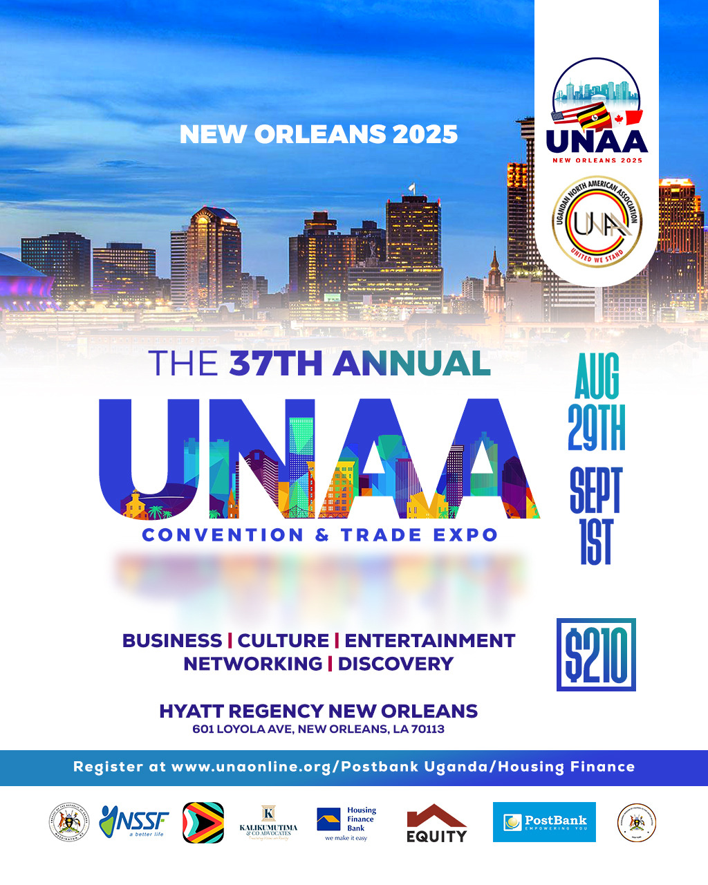 The Annual UNAA convention is the largest gathering of Ugandans in North America. Join us for a weekend of business, networking and reuniting with family and friends. Get your Tickets now for the 2025 UNAA Convention in New Orleans, Louisiana also known as The Pelican State! On Labor Day Weekend August 28th – September 1st, […]